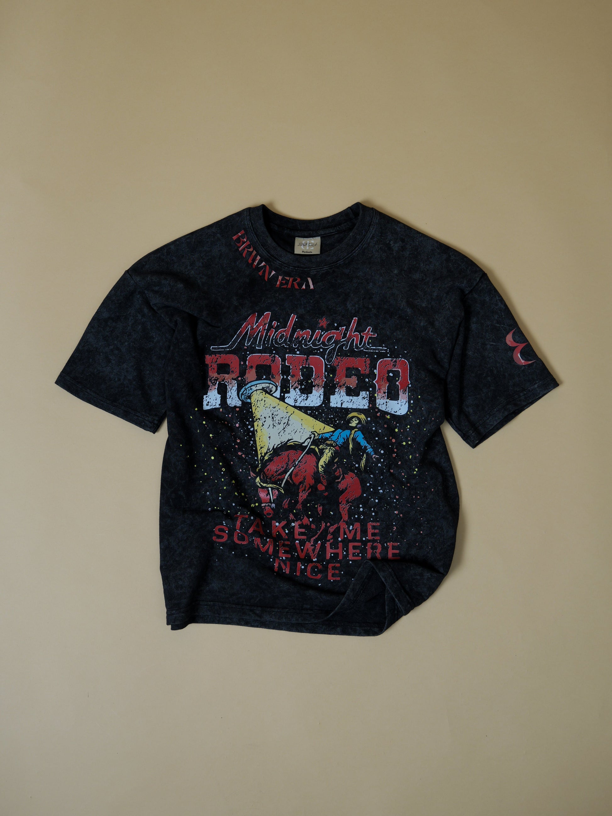 BLACK ACID WASH MIDNIGHT RIDER T-SHIRT