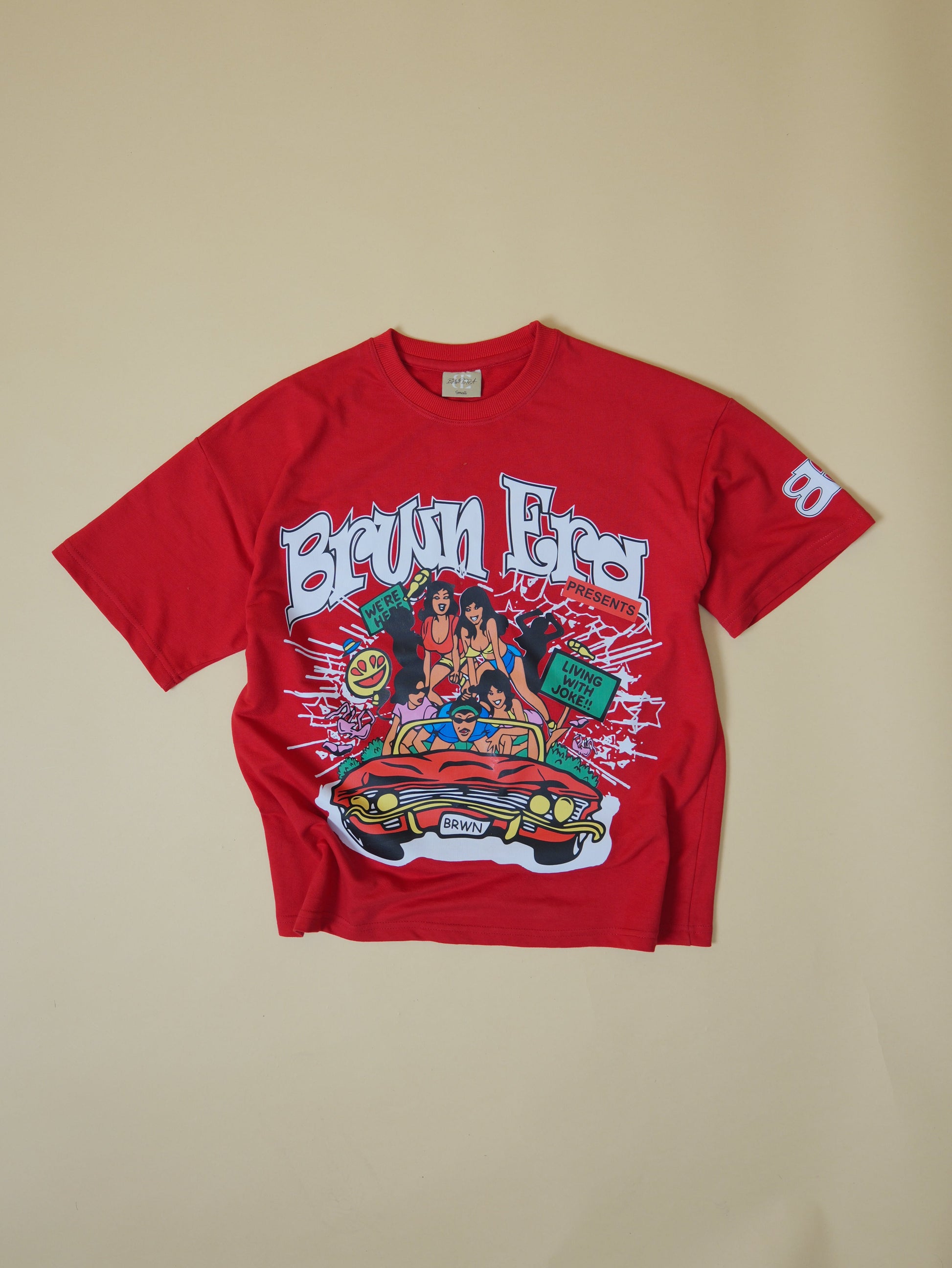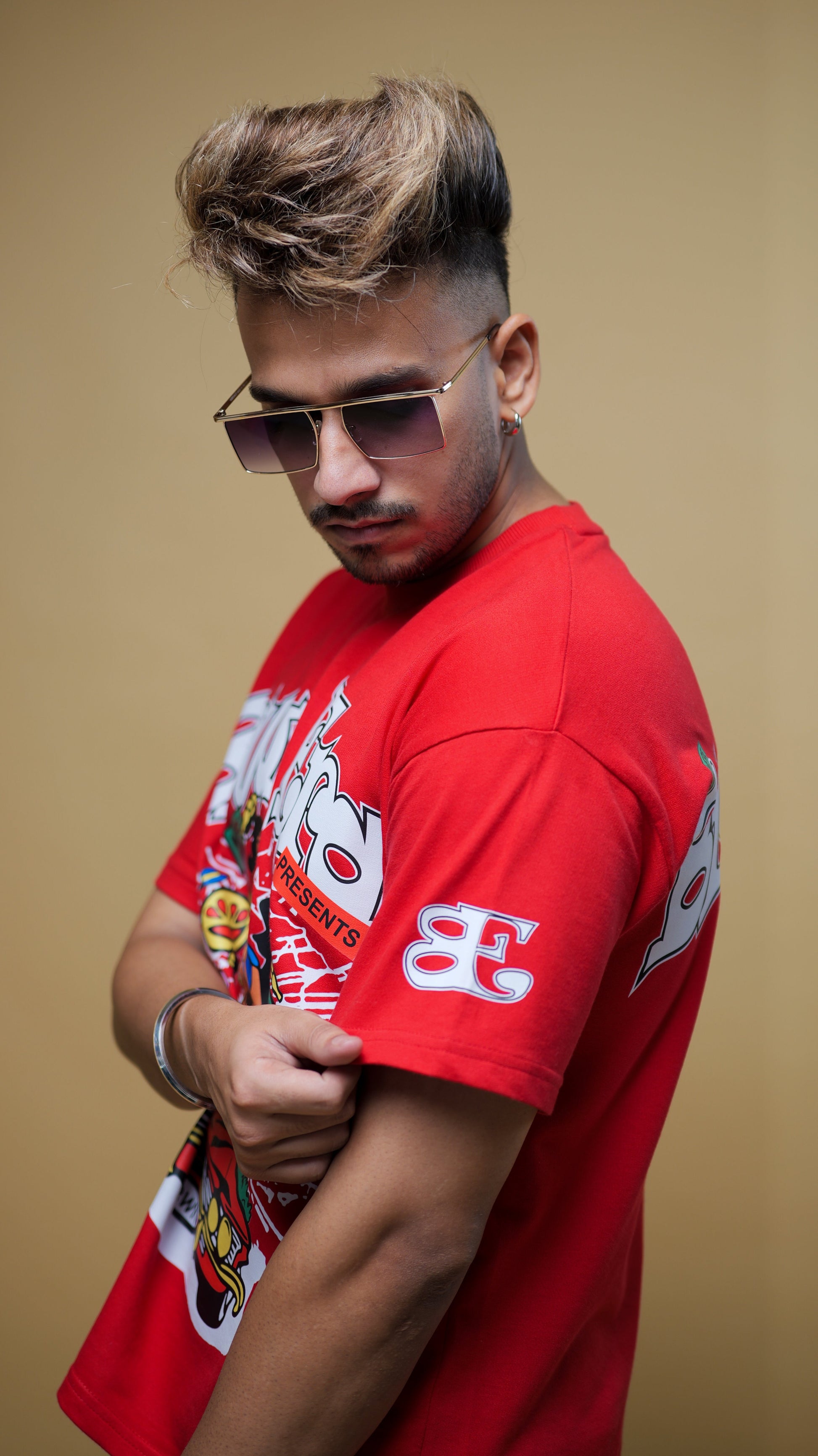 Embrace the new trend with the RED STREET FUN T-SHIRT, featuring an oversized, cropped length design that pairs effortlessly with jeans, cargos, or shorts. Crafted from premium terry cotton, it offers exceptional comfort and durability. The high-quality print adds a playful touch, enhancing your casual style while boosting confidence. Perfect for those seeking a fun, freestyle look without compromising on fabric quality.